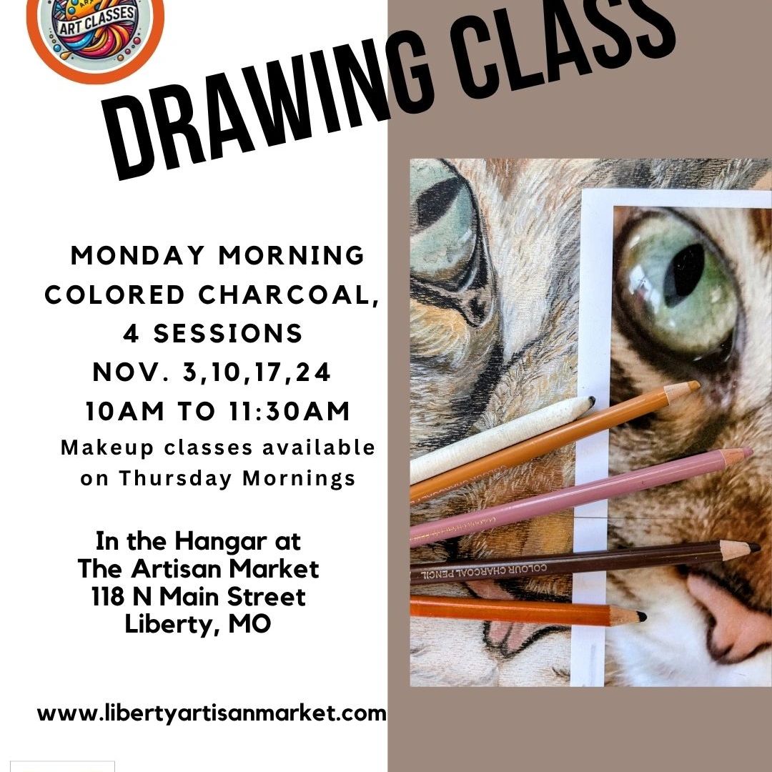 November 3,10,17,24 (make up classes available on Thursday mornings) Let's bring some color into your drawings with colored charcoal pencils. Click on the Registration and Information link below for supply list and additional information. Beginners welcome!